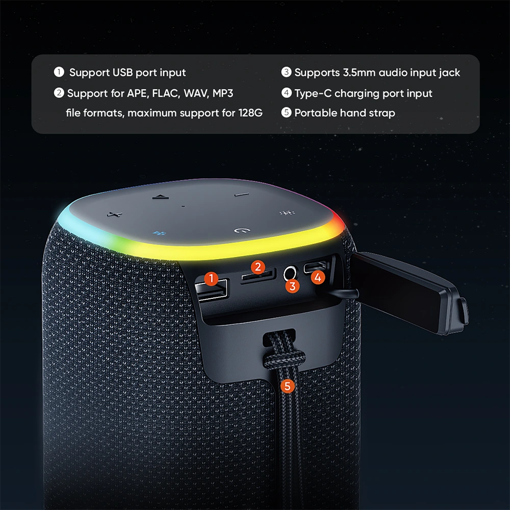 Equipped with the latest Bluetooth 5.3 technology, this speaker offers stable connections and low latency. The 3600mAh battery provides up to 6 hours of playtime at 50% volume, ensuring you can enjoy your music for extended periods without interruption.