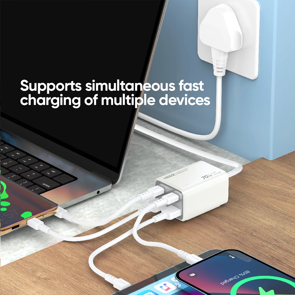 VIDVIE Desktop Charger GaN 70w USB Fast Charging For Home/Office