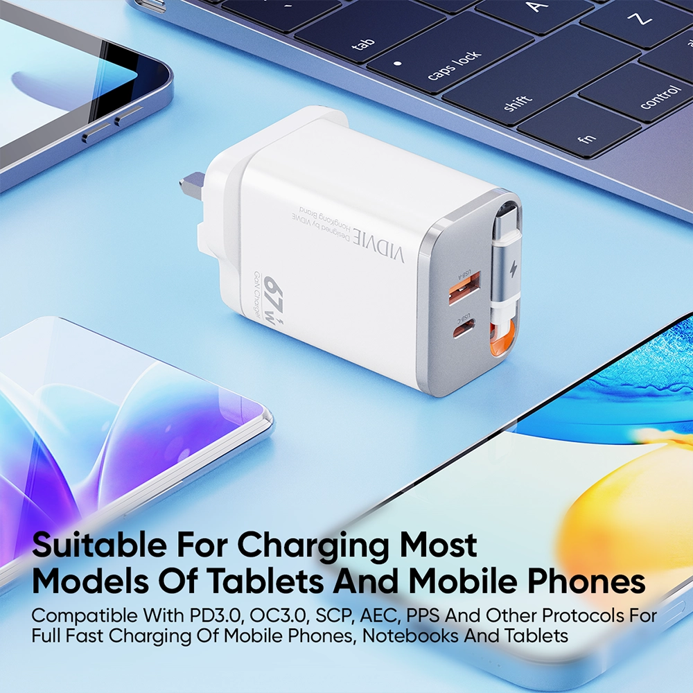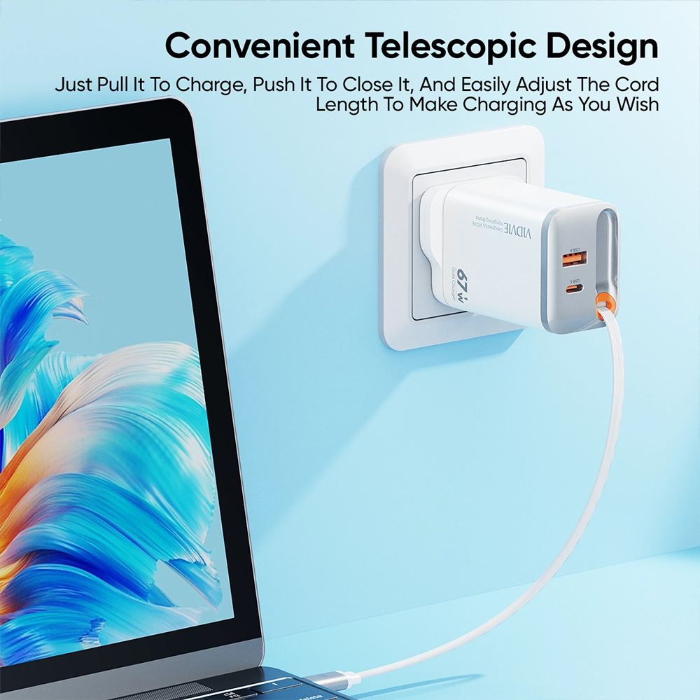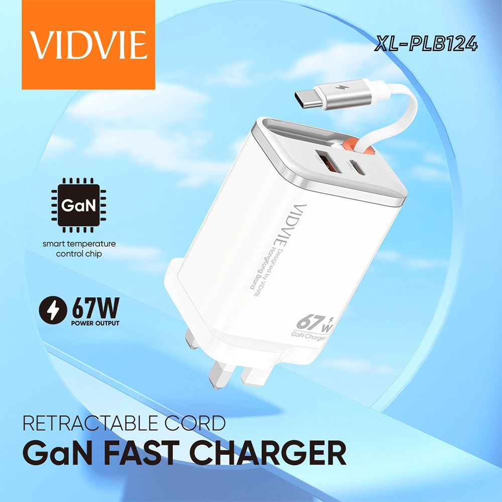 VIDVIE GaN Super Fast Charger with Built-in Type-C Cable