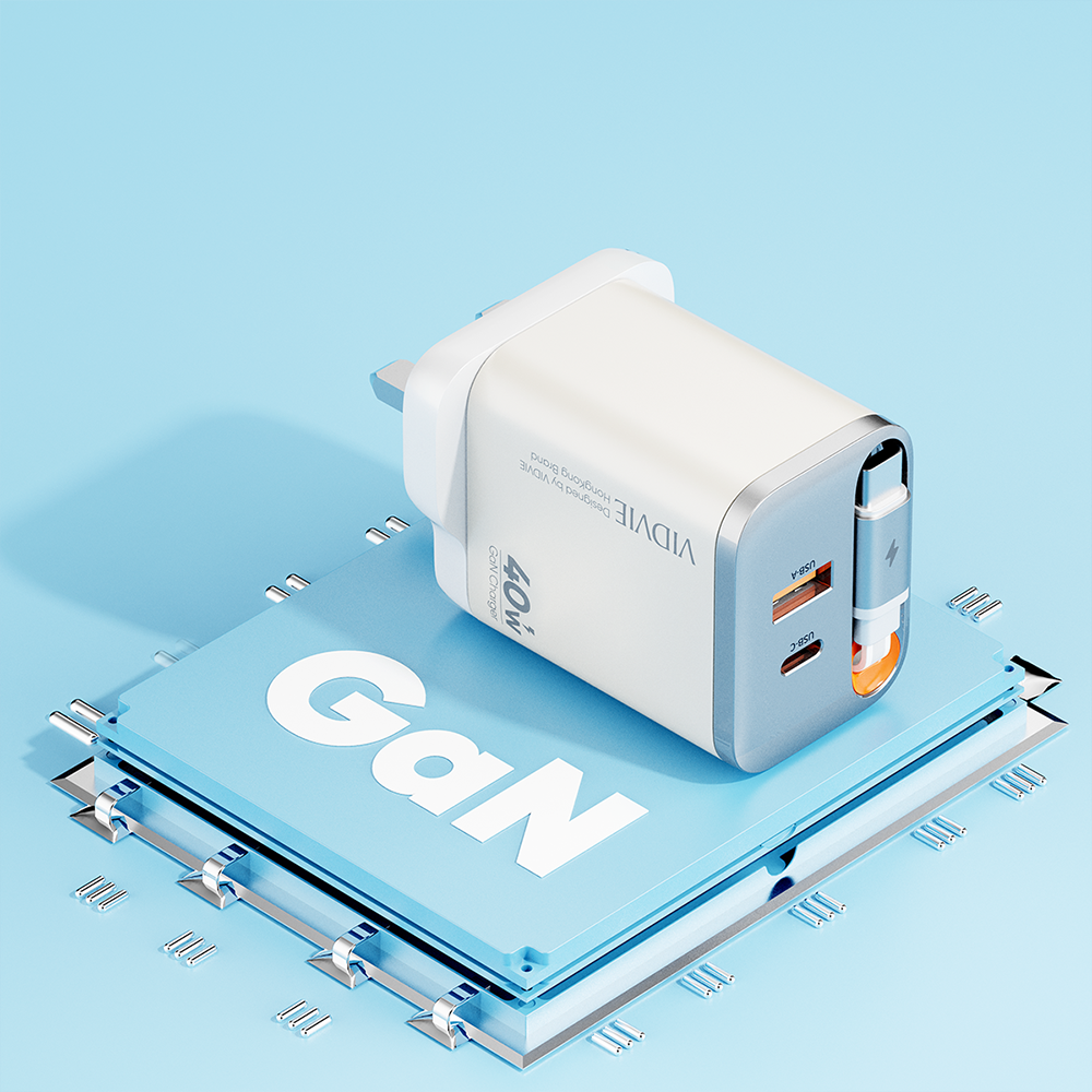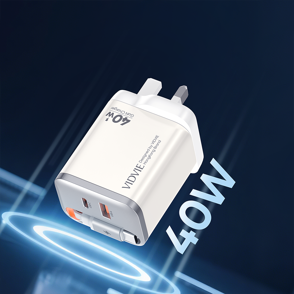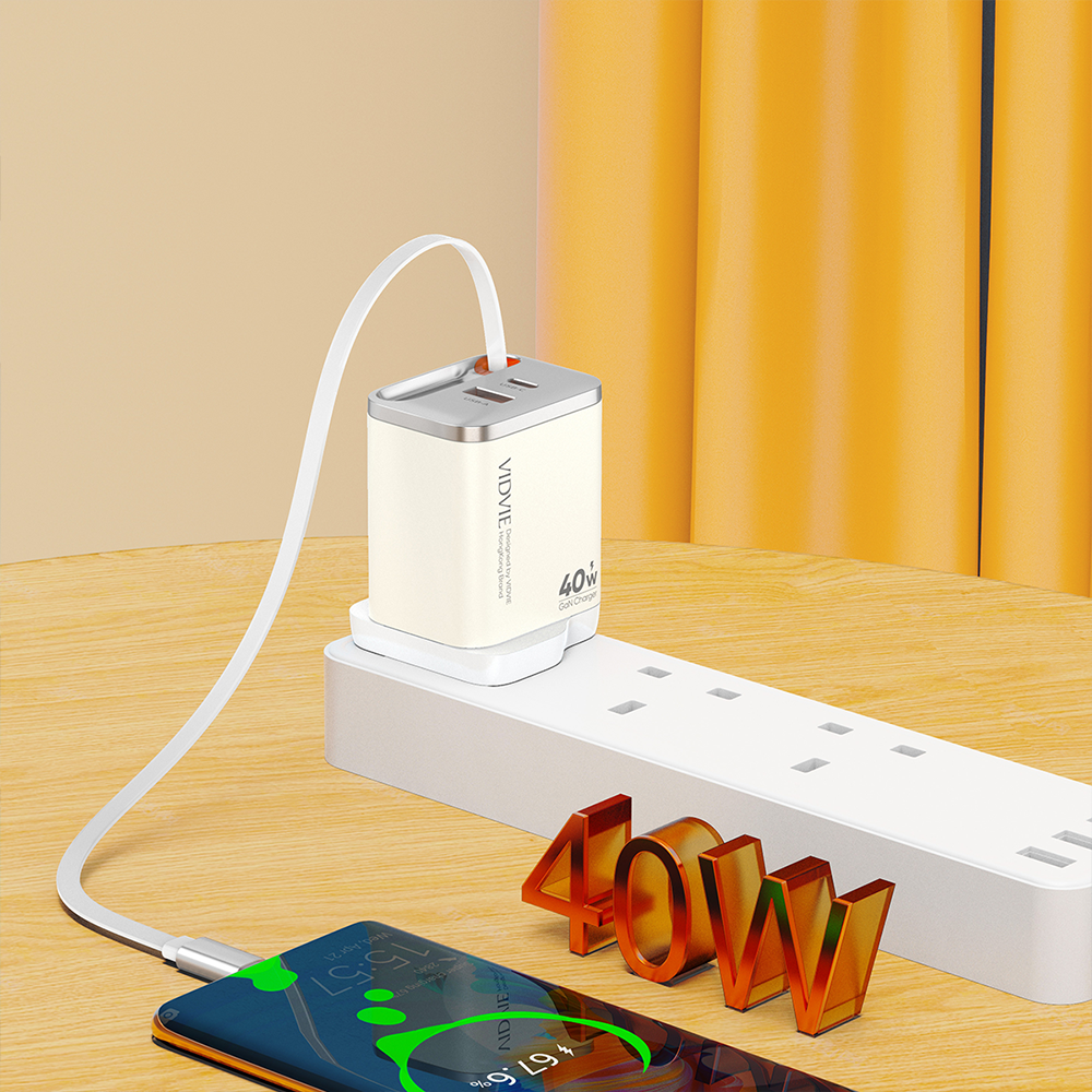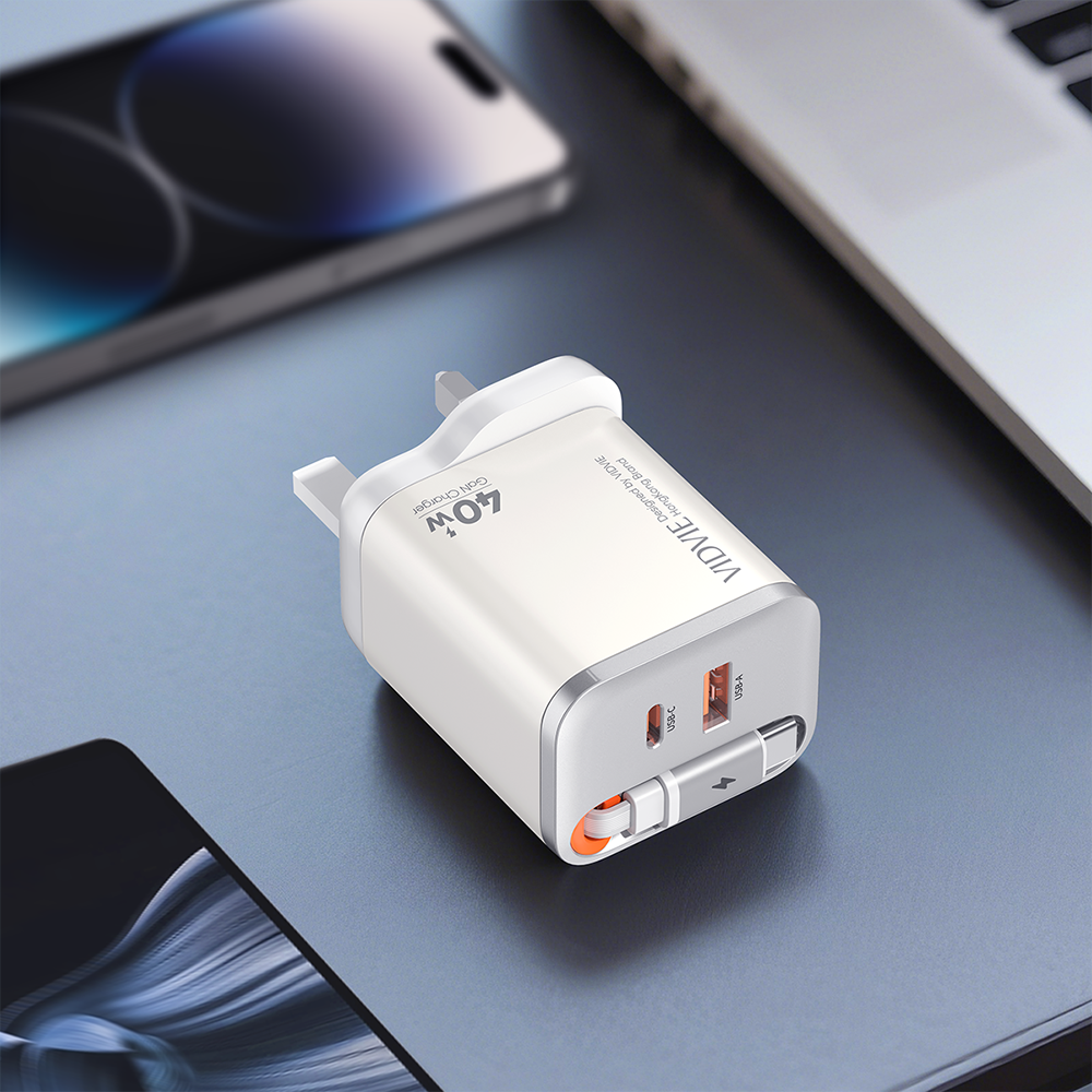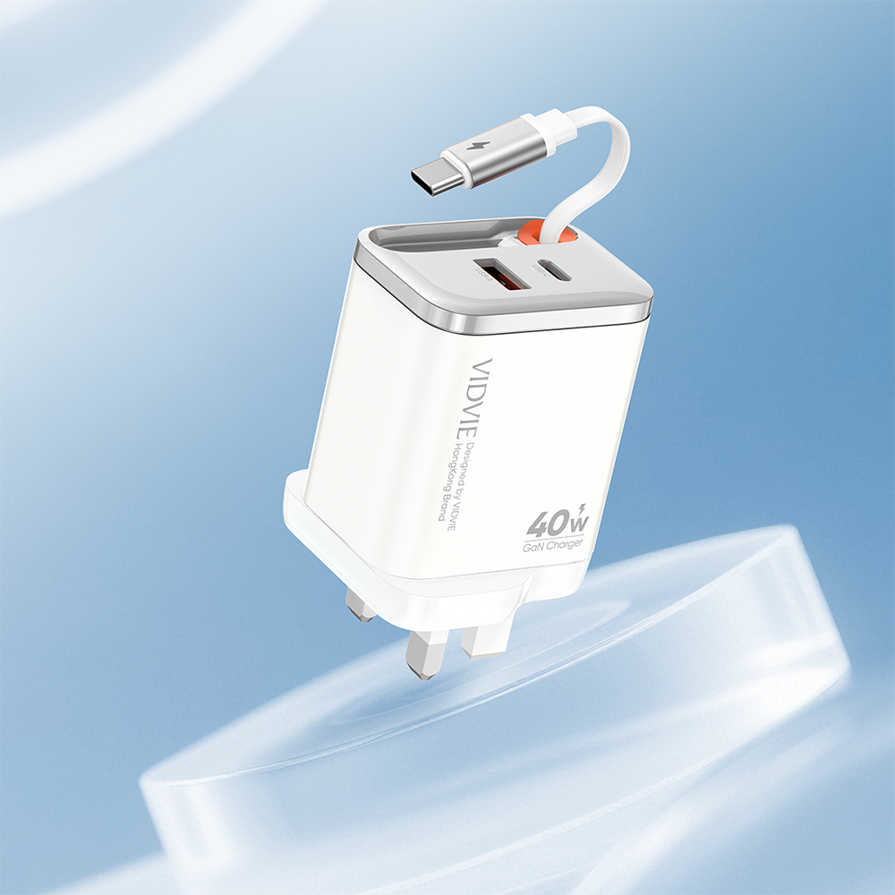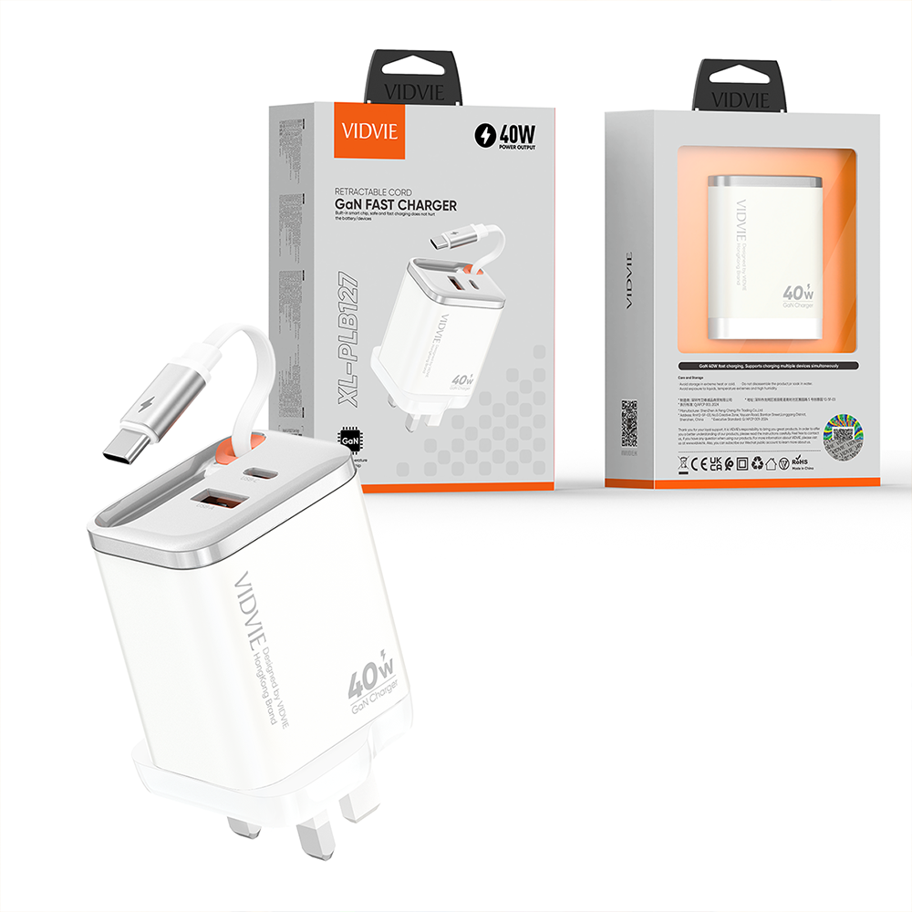 VIDVIE 40W Retractable Cord GaN Fast Charger