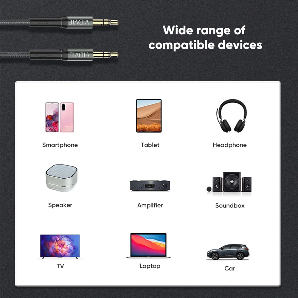 This audio cable features standard 3.5mm male connectors on both ends, making it compatible with a wide range of devices, including smartphones, tablets, laptops, car,and audio players.