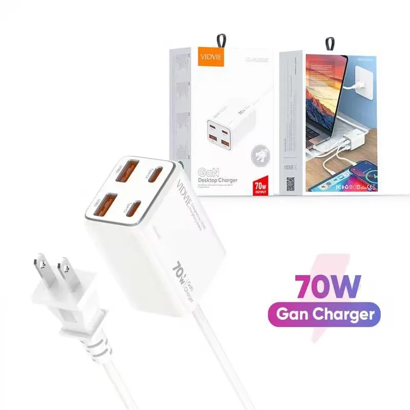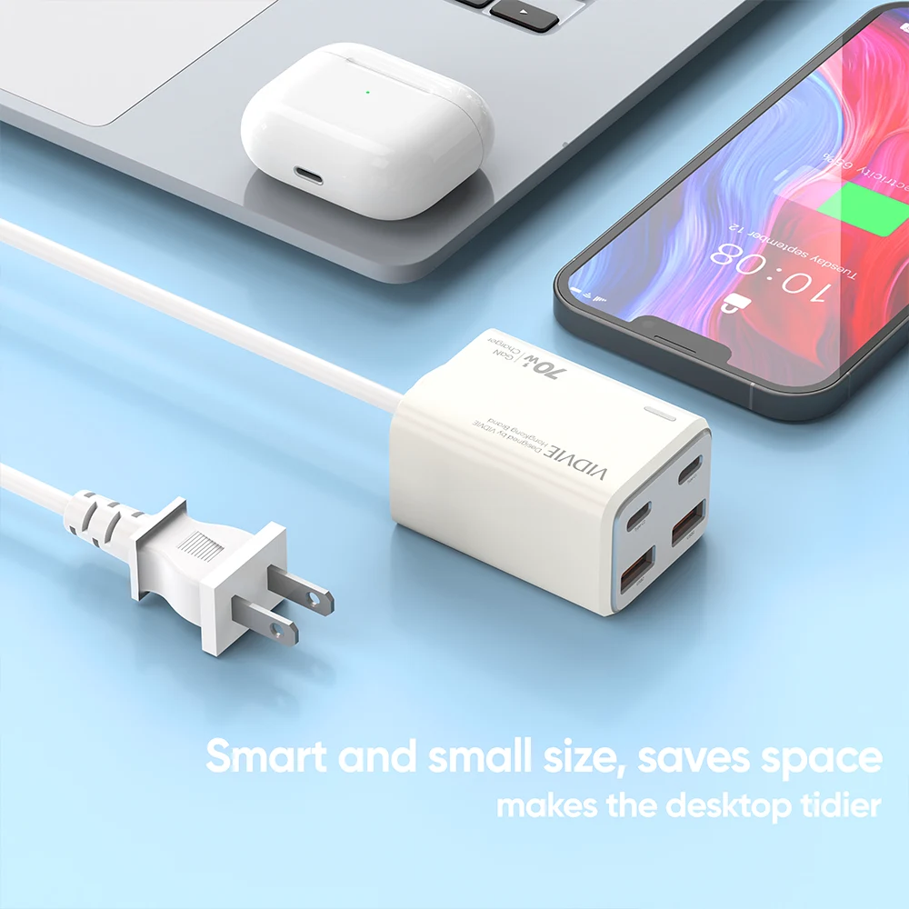VIDVIE GaN Desktop Phone Charger 70w USB Fast Charging Power Strip