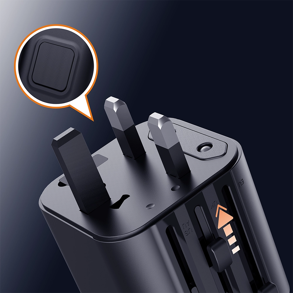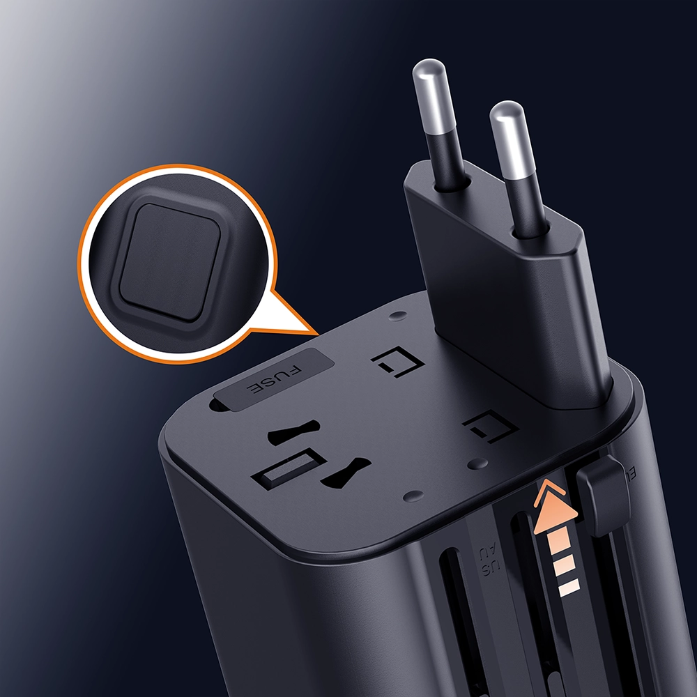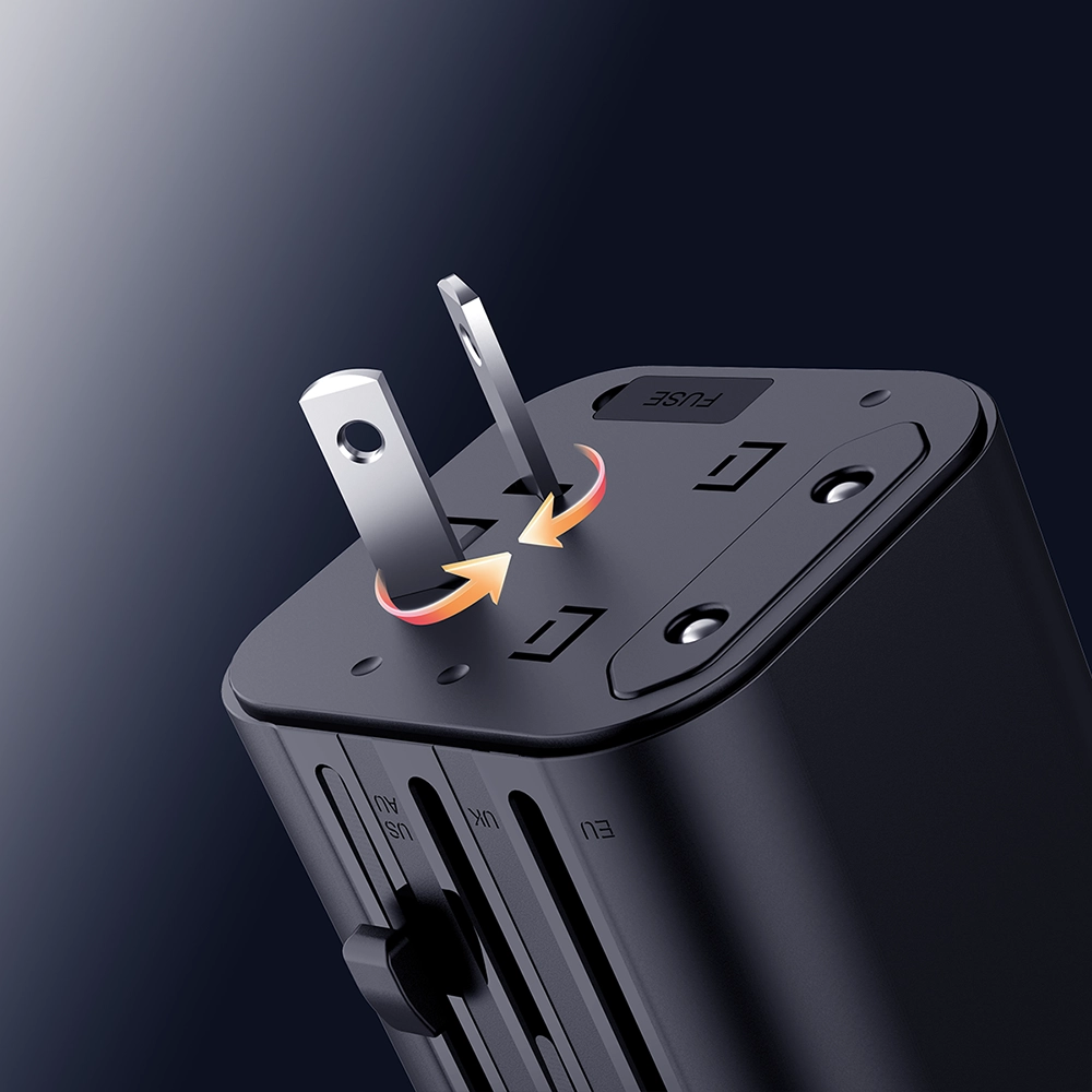 The compact and lightweight design of this travel adapter makes it easy to pack and carry, making it ideal for travelers. The foldable design further reduces its size for convenient storage.