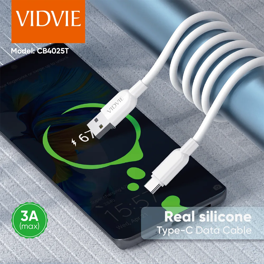 VIDVIE Soft Silicone Lightning to USB A Cable 1.2m