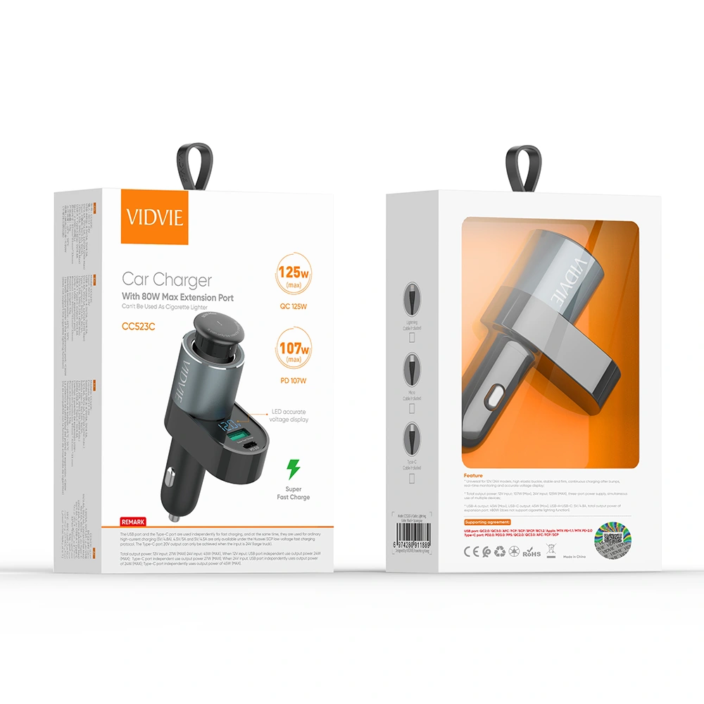 VIDVIE PD 45W+QC 24W expansion output 80W Max Car Charger