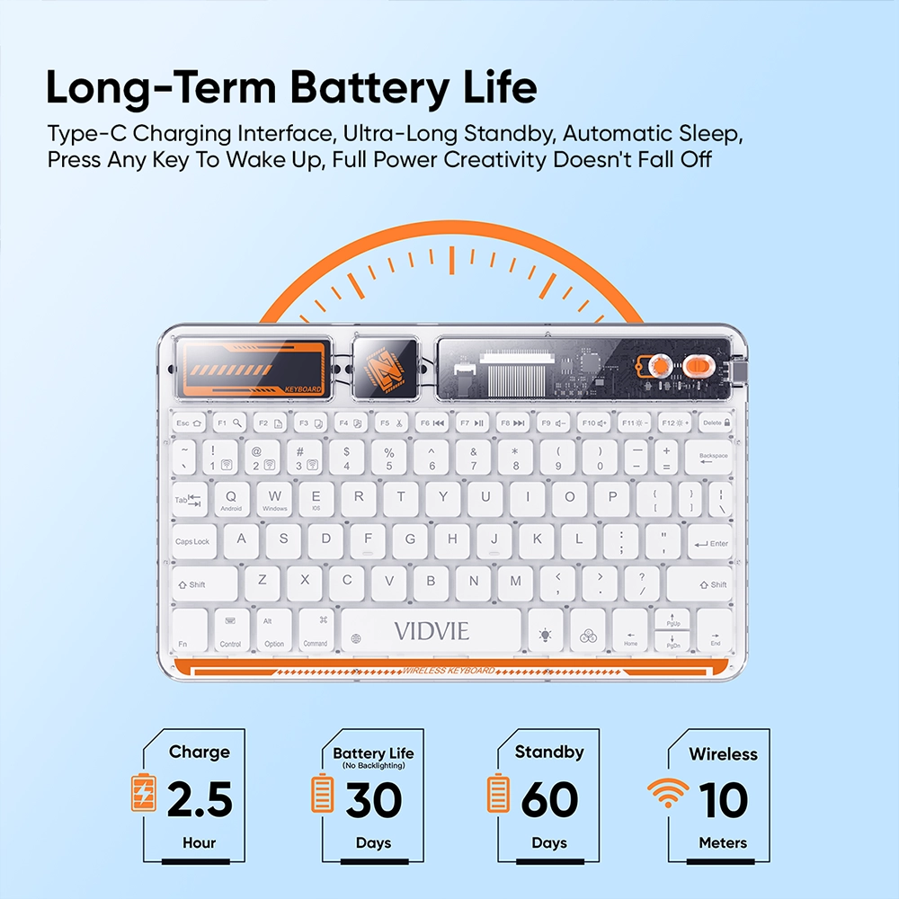 VIDVIE 78-Key Wireless LED Bluetooth Keyboard